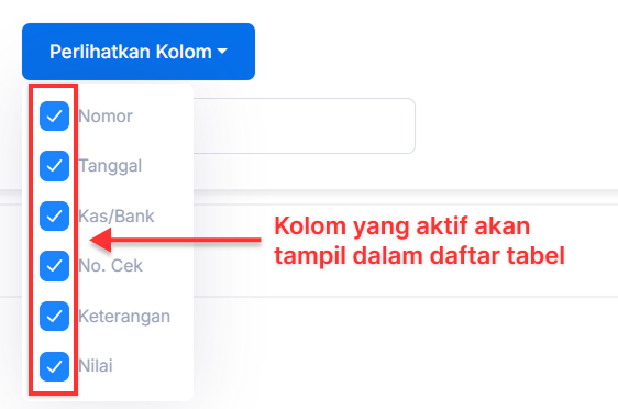 Anda akan melihat daftar opsi pilihan semua nama kolom yang ada. Pilih kolom apa saja yang akan ditampilkan dalam daftar tabel dengan mengaktifkan kolom tersebut.