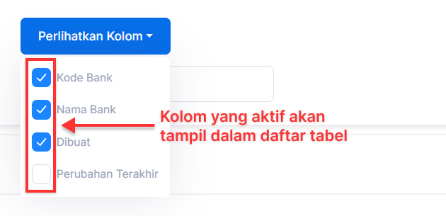 Anda akan melihat daftar opsi pilihan semua nama kolom yang ada. Pilih kolom apa saja yang akan ditampilkan dalam daftar tabel dengan mengaktifkan kolom tersebut.