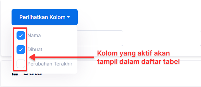 Anda akan melihat daftar opsi pilihan semua nama kolom yang ada. Pilih kolom apa saja yang akan ditampilkan dalam daftar tabel dengan mengaktifkan kolom tersebut.