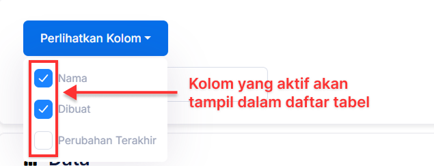 Anda akan melihat daftar opsi pilihan semua nama kolom yang ada. Pilih kolom apa saja yang akan ditampilkan dalam daftar tabel dengan mengaktifkan kolom tersebut.