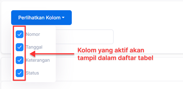 Anda akan melihat daftar opsi pilihan semua nama kolom yang ada. Pilih kolom apa saja yang akan ditampilkan dalam daftar tabel dengan mengaktifkan kolom tersebut.