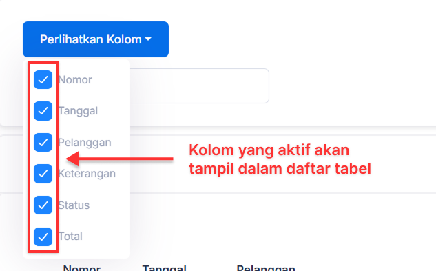 Anda akan melihat daftar opsi pilihan semua nama kolom yang ada. Pilih kolom apa saja yang akan ditampilkan dalam daftar tabel dengan mengaktifkan kolom tersebut.