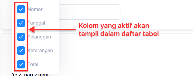 Anda akan melihat daftar opsi pilihan semua nama kolom yang ada. Pilih kolom apa saja yang akan ditampilkan dalam daftar tabel dengan mengaktifkan kolom tersebut.